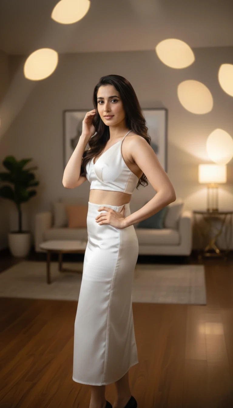 This specific look became quite popular when she wore it to a wedding party. It consists of two matching pieces: a halter-neck crop top (often with thin "strappy" details) and a matching midi skirt with a high side slit.
