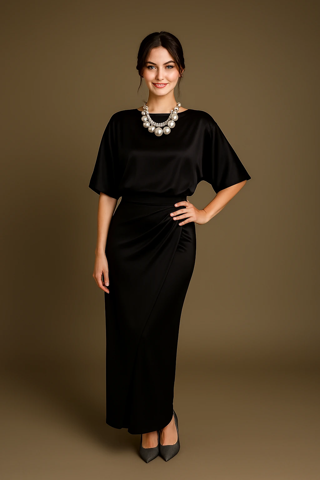 Thoughtfully crafted to blend comfort with sophistication, this outfit is ideal for festive celebrations, stylish parties, or elegant evening gatherings. The silky satin fabric delivers a radiant, luxe finish, while the wrap skirt gracefully contours the silhouette, creating a beautifully flattering and refined look.